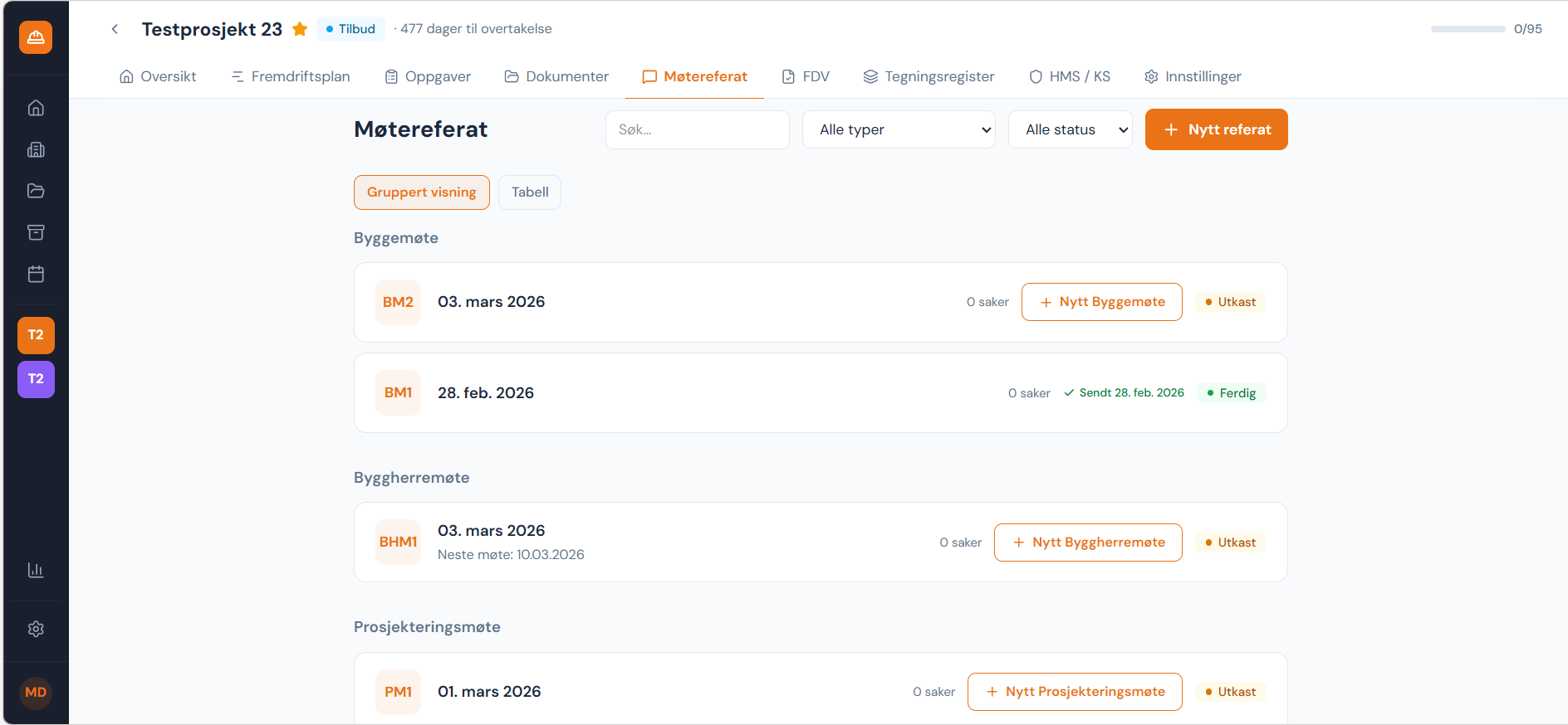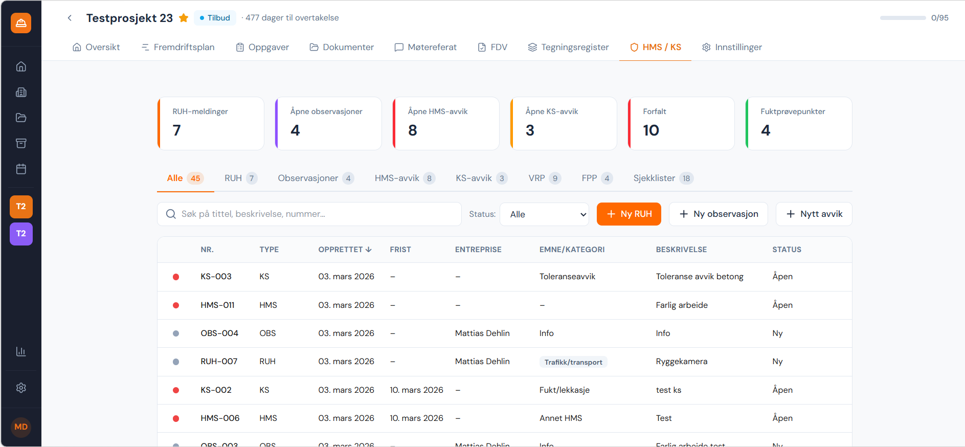 Etter en periode med betatesting og gode tilbakemeldinger er vi klare for lansering. Frem til 15. april kan du teste plattformen helt gratis. Vi har ryddet kalenderen i uke 12, 13 og 15 for å vise frem løsningen — vil du se selv hvordan Buildex fungerer? Ta kontakt for å booke en demo.